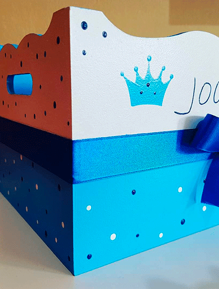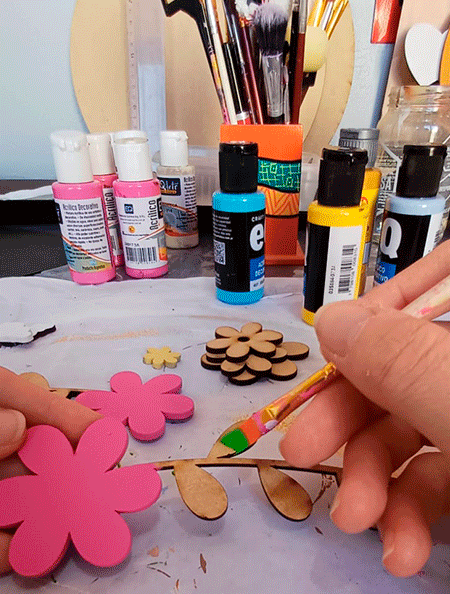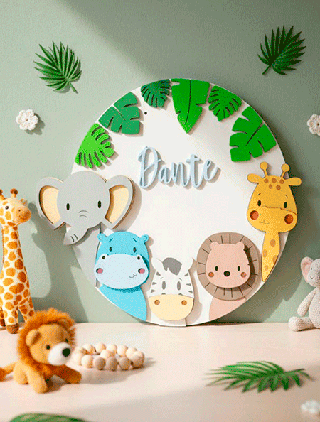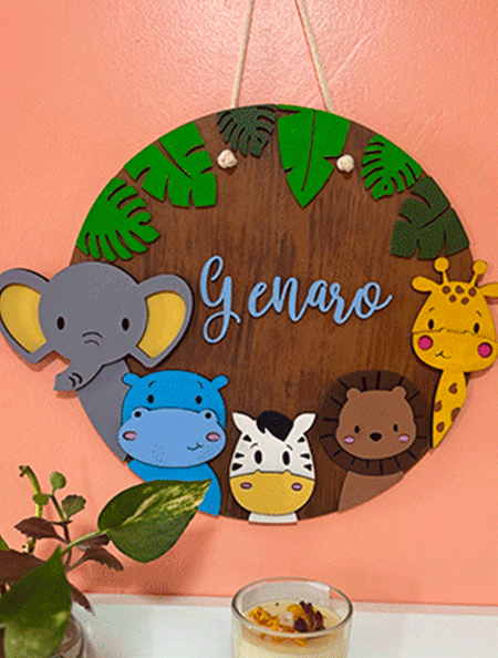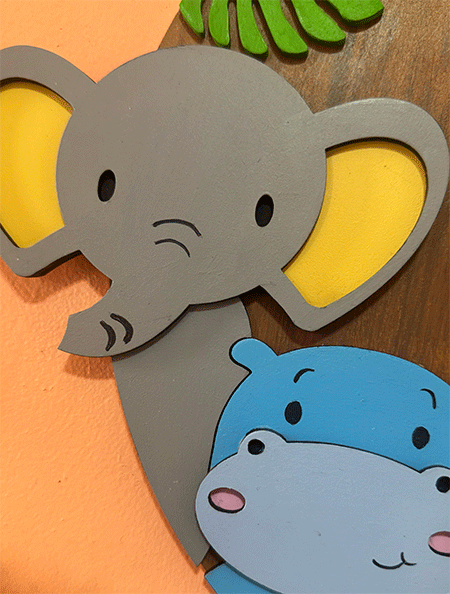 Trabajo artesanal sobre madera MDF. Pintamos cada capa por separado para lograr una terminación limpia y colores definidos.